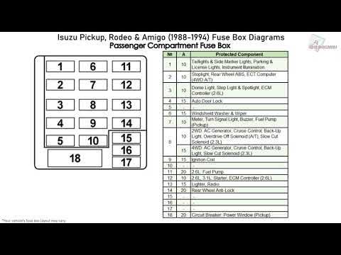 Isuzu Pickup Rodeo Amigo 1988 1994 Fuse Box Diagrams Youtube